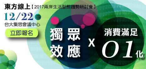 其他撼動市場的消費趨勢究竟為何?行銷人面臨何種新時代的消費考驗?品牌競爭方式的改變,以及消費者心中的購買思維又是如何展現?敬請期待12/22 (四) 東方線上兩岸生活型態年度趨勢研討會。(