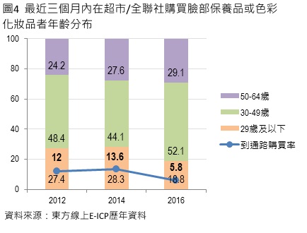 值得一提的是,29歲以下消費者是移轉離開百貨公司的通路客群中,速度最快的一群,年輕人在美妝保養品上背離百貨公司的趨勢是相當明顯。