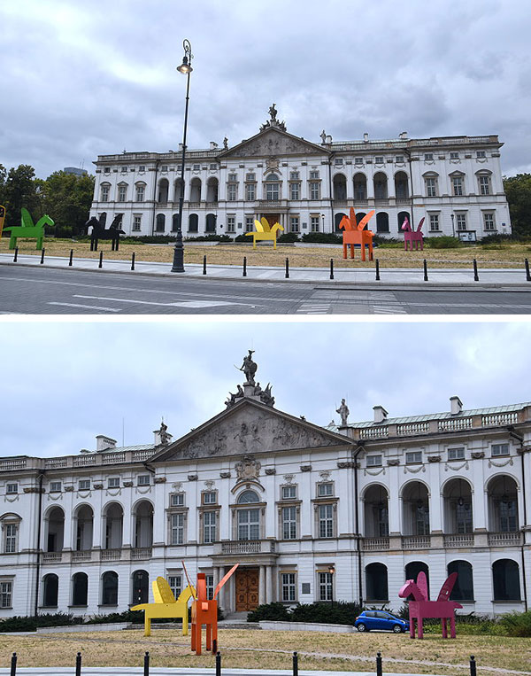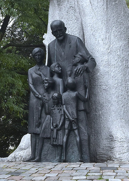 這個由字母P和W混合體標誌為「Polska Walcząca」的縮寫,意指波蘭戰鬥;Logo呈現錨的上半部是P字形、錨鉤為字母W,合成錨狀有「戰鬥波蘭之錨」意含,原是華沙起義家鄉軍的標誌,現今大量出現在華沙建築物和街道中,是華沙人民引以為傲的符號。 紀念碑對面就是波蘭軍隊主教座堂(Field Cathedral of the Polish Army),是座古典巴洛克風格的天主教教堂,也是波蘭駐軍教會的主要教堂。教堂始建於1682年至1701年期間,建築師為約澤夫·豐塔納(Józef Fontana);在1834年,教堂被俄羅斯當局據為己有並改為東正教教堂。波蘭獨立之後,教堂被恢復原貌,於1923年至1927年之間重建,並成為波蘭軍隊的教堂。 波蘭軍隊主教座堂在1944年華沙起義時被德軍摧毀。戰後,於後1946年和1960年之間由一個以萊昂·馬雷克·蘇津(Leon Marek Suzin)為首的建築師團隊重建恢復。目前是座大多數的軍事宗教慶祝活動的舉行教堂。 教堂正門前二側立有巨大船錨和飛機螺旋槳,為向海軍與空軍致敬之象徵。 波蘭最高法院大樓(Supreme Court of Poland),就位於華沙起義紀念碑旁,建於1996∼1999年間,建築師是馬雷克·布津斯基(Marek Budzyński)。最高法院大樓共有76根列柱,柱頭上是代表正義女神(Themis)屬性的天秤圖案,柱身則鑲有86句法律格言 。 波蘭最高法院大樓另一側廊下,立有象徵「信、望、愛」的卡利亞(Karyai)女像柱。 克拉辛斯基宮(Krasiński Palace),又「稱聯邦宮 (Palace of the Commonwealth)」,這座宮殿是巴洛克住宅的典型範例,初建於1677年至1683年;在 1944 年的華沙起義期間遭德軍焚燬,戰後業經悉心規劃重建,再現昔日的恢弘氣派,被認為是華沙最華麗的巴洛克式建築,現在是波蘭國家圖書館的特藏館。一旁還坐落著美麗的克拉辛斯基花園 (Krasiński Garden),園內保留著宮殿原本的圍籬和大門遺跡,而 19 世紀種下的樹木,至今仍青翠繁茂。 車行來到文化科學宮附近的維托克日斯基公園(Świętokrzyski Park)。Świętokrzyski公園是華沙的一座城市公園,建於1950年代。進到公園可完整看到在波蘭國內一直備受爭議的文化科學宮,波蘭人給這棟這棟外觀嚴肅端方的高聳大樓起了很多諷刺意味的別稱,如:史達林的注射器、俄羅斯婚禮蛋糕等。 公園裡就可清楚看到文化科學宮的正立面,大樓頂層裝飾了尖釘似的「波蘭護牆」,塔樓頂端的座鐘面是 4 個直徑 6 公尺 的圓盤,各自面向一方,於 2001 年才加上;據稱在世界上的鐘塔中,其高度數一數二。這座鐘每到華沙時間整點就報時,2009年1月1日,當鐘塔報完新年鐘聲之後便永遠的停止了報時,大鐘聲正式走入歷史。 Świętokrzyski公園噴水池的噴泉水柱由石雕獅頭的口中噴出。 Świętokrzyski公園裡的「雅努什•柯扎克紀念碑(Monument to Janusz Korczak)」。這座紀念碑是紀念波蘭的猶太裔醫生、兒童人權之父雅努什.柯札克(Janusz Korczak)終生捍衛孩子的自由與尊嚴。 雅努什•柯扎克(Janusz Korczak,1878~1942年8月5日或6日),真名亨利•哥德施密特(Henryk Goldszmit),也被人稱為「老醫生」或「醫生先生」,是一位醫生、作家、記者與社會活動家,且曾經是一位波蘭軍官。曾宣稱:自己一輩子既是波蘭人,也是猶太人,最後死於特雷布林卡德國納粹集中營。雅努什•柯扎克為兒童權利和平等付出了畢生的精力,即使在當時顛沛流離的生活中,他始終致力於照顧孤苦的孩子,在戰亂中設置避難營照顧兒童、為需要的孩子們開設孤兒院,甚至面對納粹迫害,他堅持與兒童們同在。柯札克始終以孩子本位對待生命,以無限的愛與相信,讓孩子們學習自主自治,用他的生命影響了全世界對待兒童的方式(資料參考網路)。 雅努什•柯扎克是一位富有創造力的教育家,研究兒童心理發展的先鋒,出版過多部關於教育的書籍。第二次世界大戰爆發時,柯札克與他的孤兒院將近200個孩子一起遷入猶太隔離區,他在生命盡頭之前的掙扎求存和無數次挽救孩子的行動,都收錄於《柯札克猶太隔離區日記》這本回憶錄裡。1990 年上映的電影《Korczak》,便是由波蘭電影導演安傑伊•瓦依達(Andrzej Wajda)根據柯扎克真實經歷改編拍攝而成的黑白戰爭傳記片(資料參考網路)。 文化科學宮(Palace of Culture and Science),由約瑟夫•史達林(Joseph Stalin) 下令興建,於1952年動工,1955年落成,外觀是一座典型的社會主義時代倡導的現實主義建築風格的大樓,由蘇聯建築師列夫·拉德內夫(Lev Rudnev)設計,作為「蘇聯人民對波蘭人民的禮物」在華沙市中心拔地而起,是著名的地標建築物之一。文化科學宮有37層樓高,最頂樓上的高塔達234公尺,為華沙最高的建築,可付費登上文化科學宮30樓的觀景台,將整個華沙的市容盡收眼底。