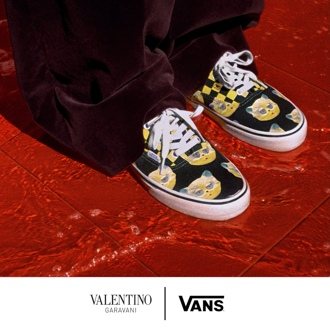 VALENTINO攜手VANS推出獨家聯名運動鞋並推出全新形象大片。本組廣告大片及靜態畫面皆由AI生成,原始素材取自Valentino Le Me□ta-The□a�