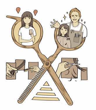 為了物色更經濟的理髮師,我經常勘查理髮店,發現一間可以中文溝通的家庭理髮,但讓人垂涎的不是說中文,而是剪一次十五澳(約台幣三百元)。走進店裡我開始忐忑不安,都是刺龍刺鳳的年輕華人男性理髮師,口音很重,不容易聽懂。負責我們的那位一開口,我總不自覺立正站好、心生畏懼,還腦補著:「會不會下一刻他拳頭就硬起來?」
